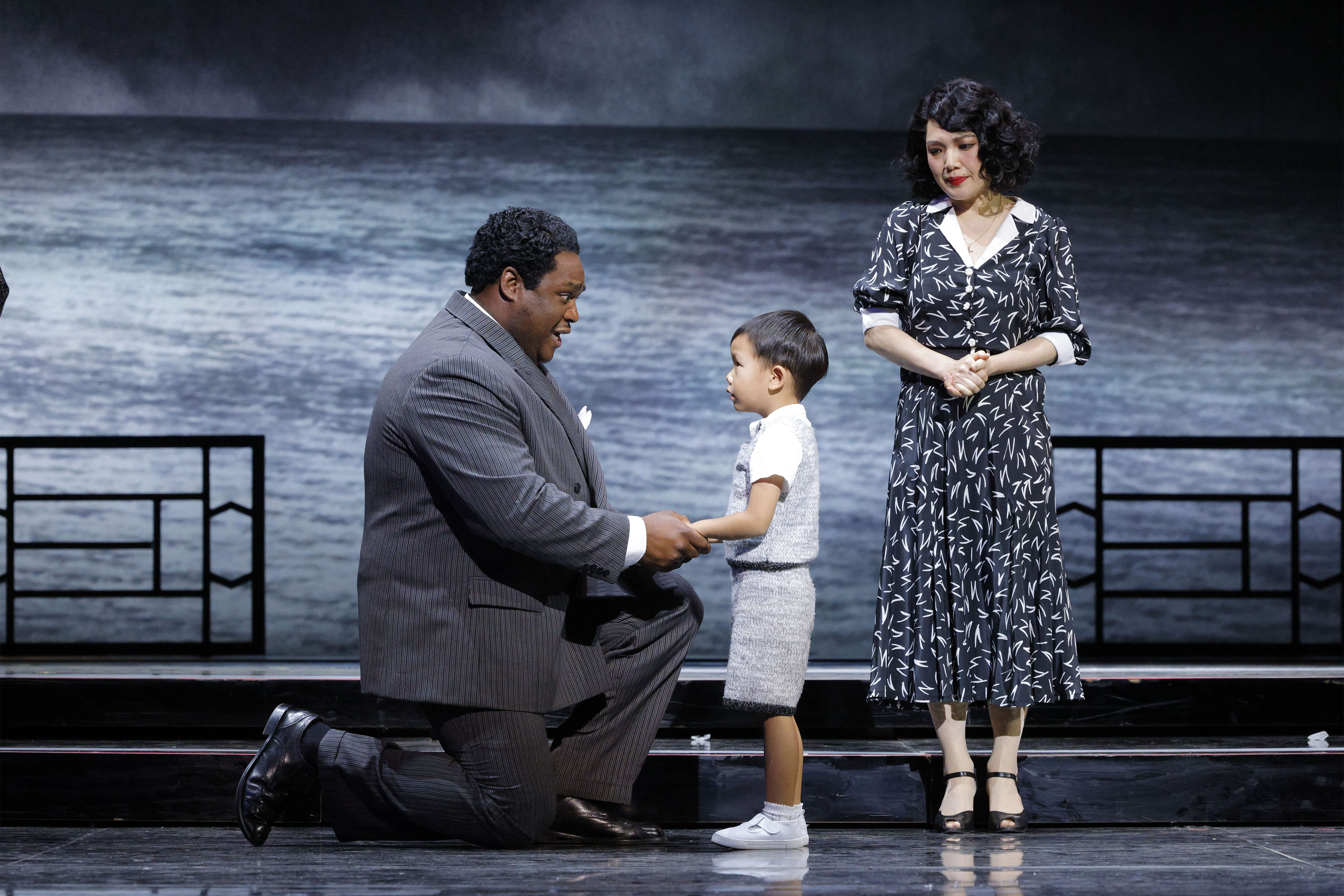 Michael Sumuel as Sharpless, Enzo Ma as Cio-Cio-Son's Child, and Karah Son as Cio-Cio-San in LA Opera's 2024 production of "Madame Butterfly." (Photo: Cory Weaver) Enzo Ma performs on September 21, and 29, and on October 9.