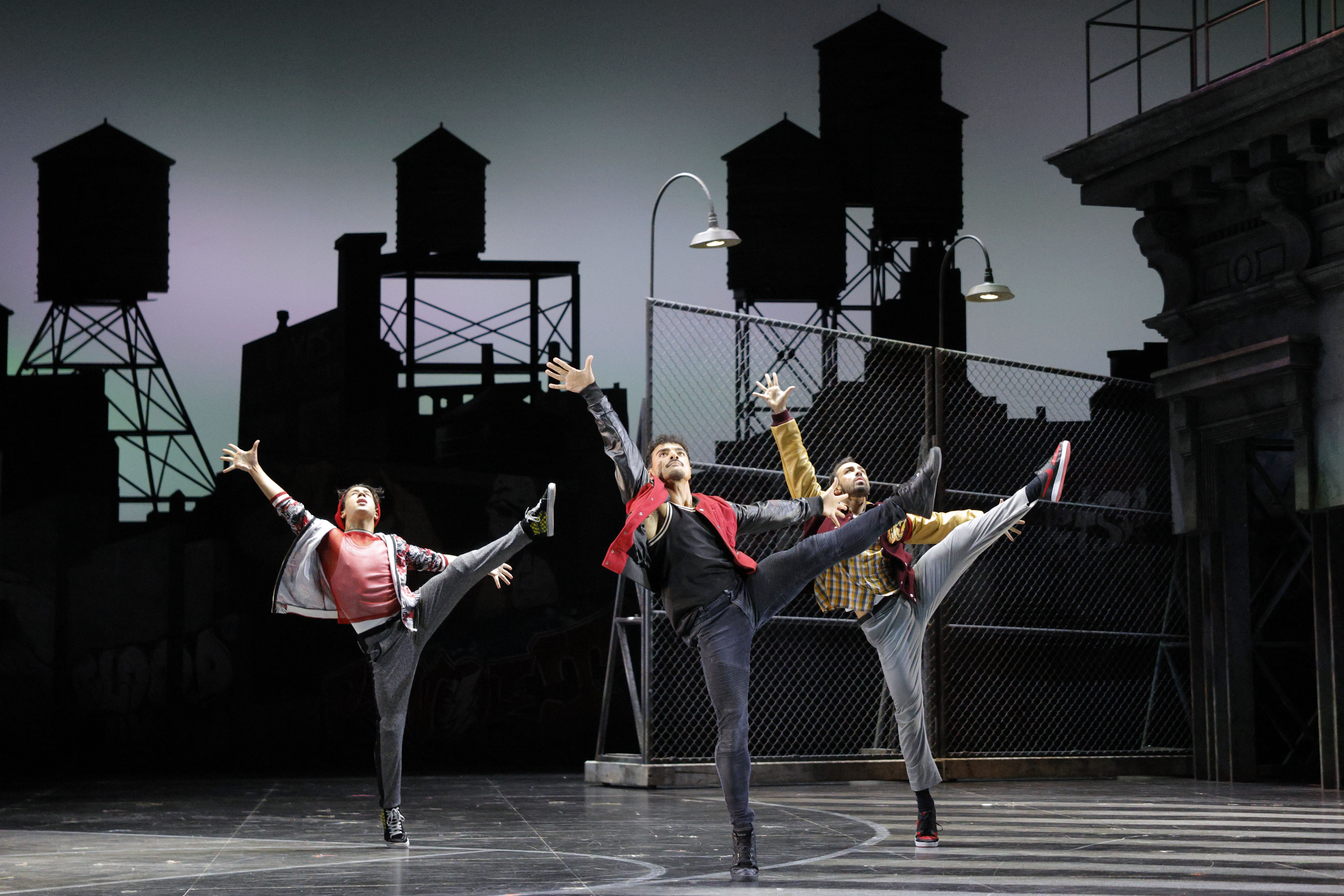 Left to right: JT Church (Nibbles), Yurel Echezarreta (Bernardo) and Juan Miguel Posada (Chino) in LA Opera's 2025 production of West Side Story. (Photo: Cory Weaver)