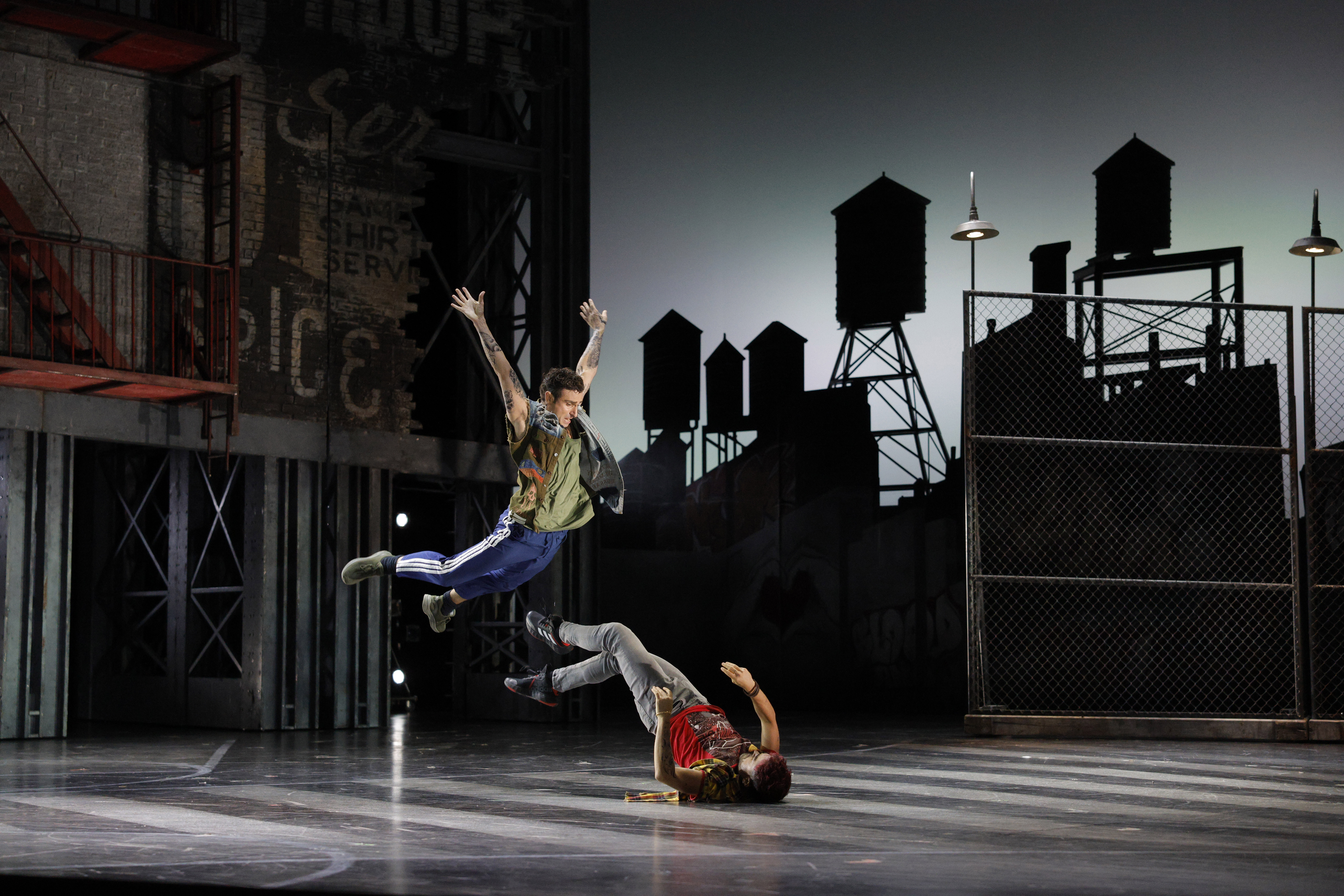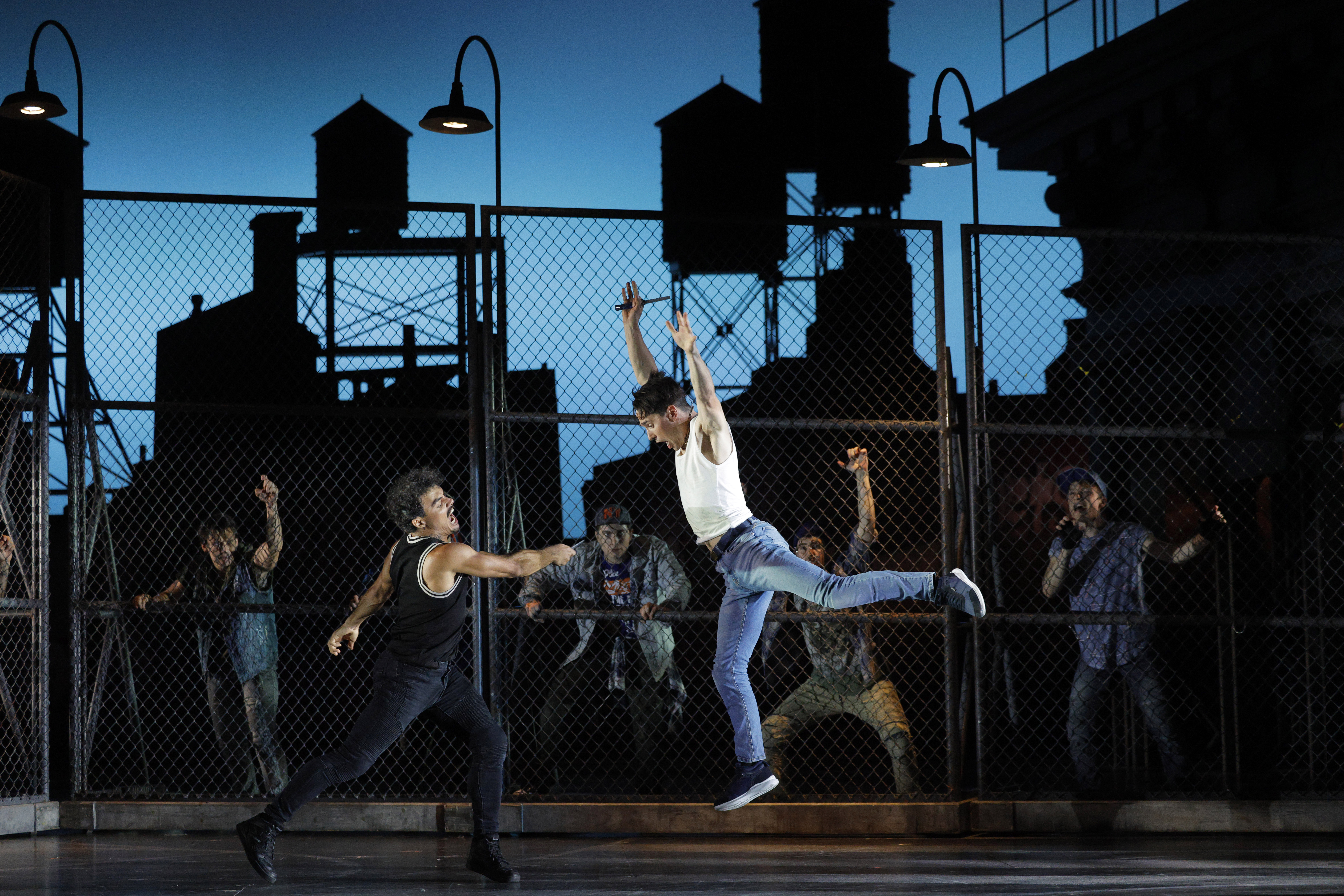 David Prottas as Action and P. Tucker Worley as Riff in LA Opera's 2025 production of West Side Story. (Photo: Cory Weaver)