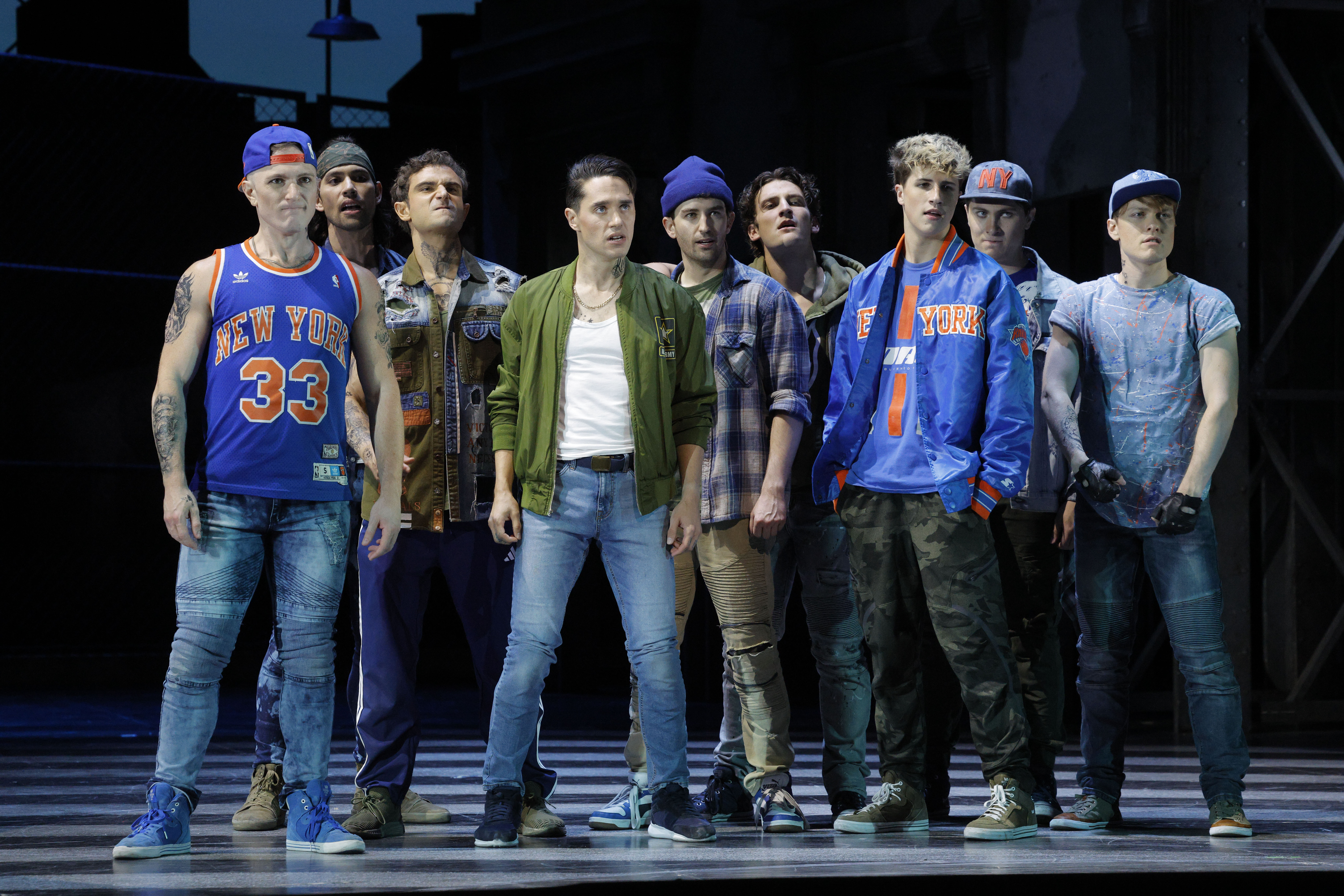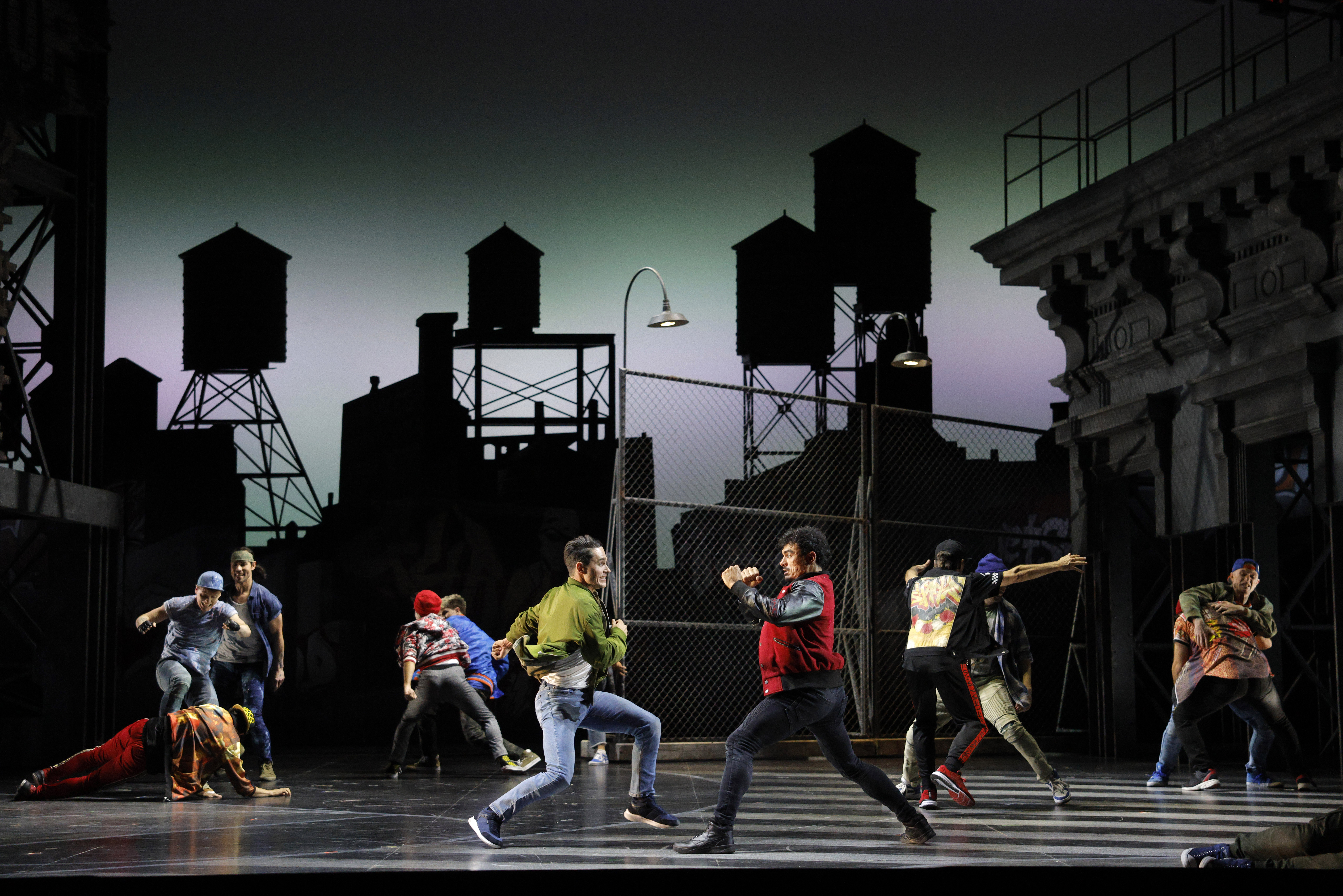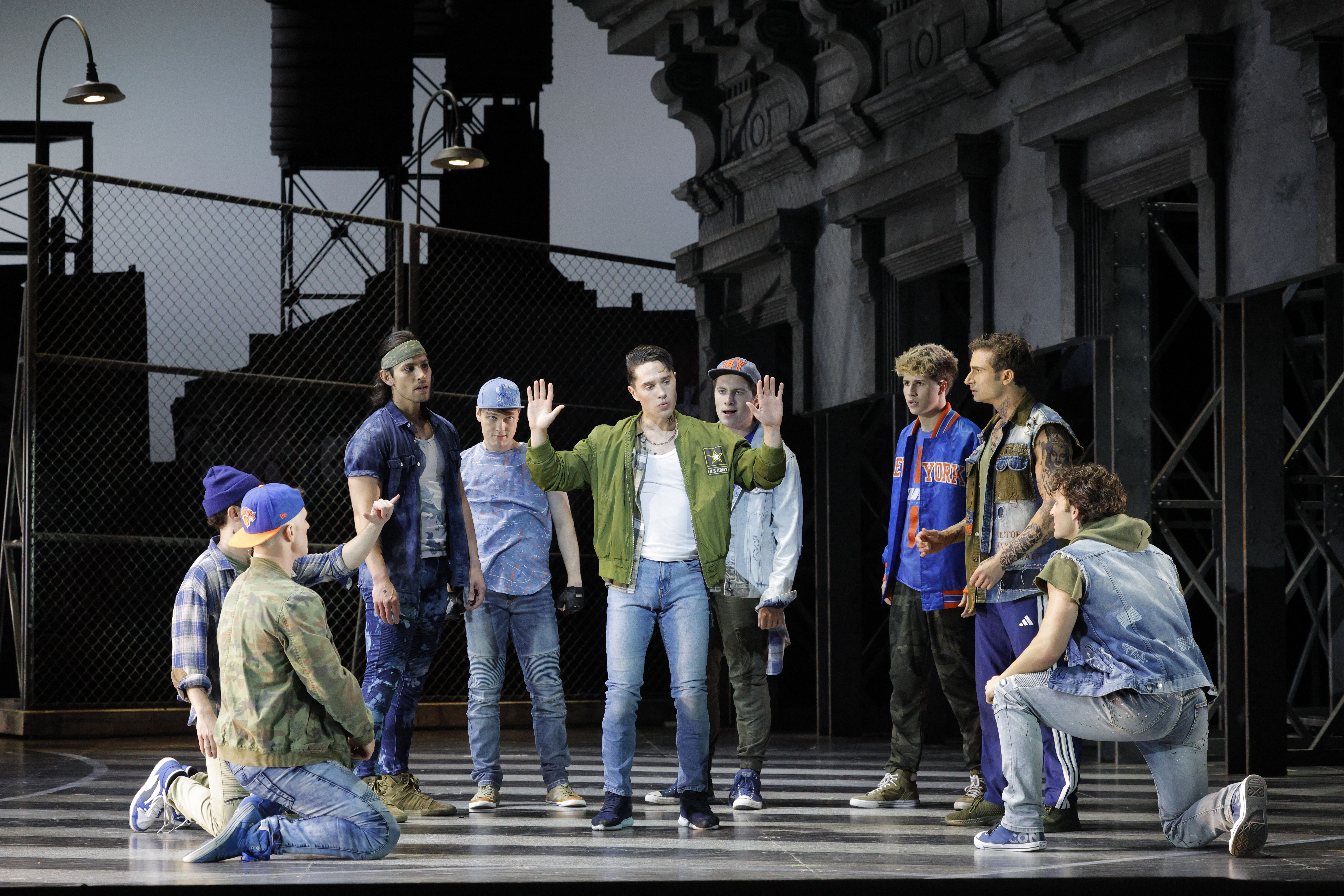 At center (in green), P. Tucker Worley as Riff in LA Opera's 2025 production of West Side Story. (Photo: Cory Weaver)