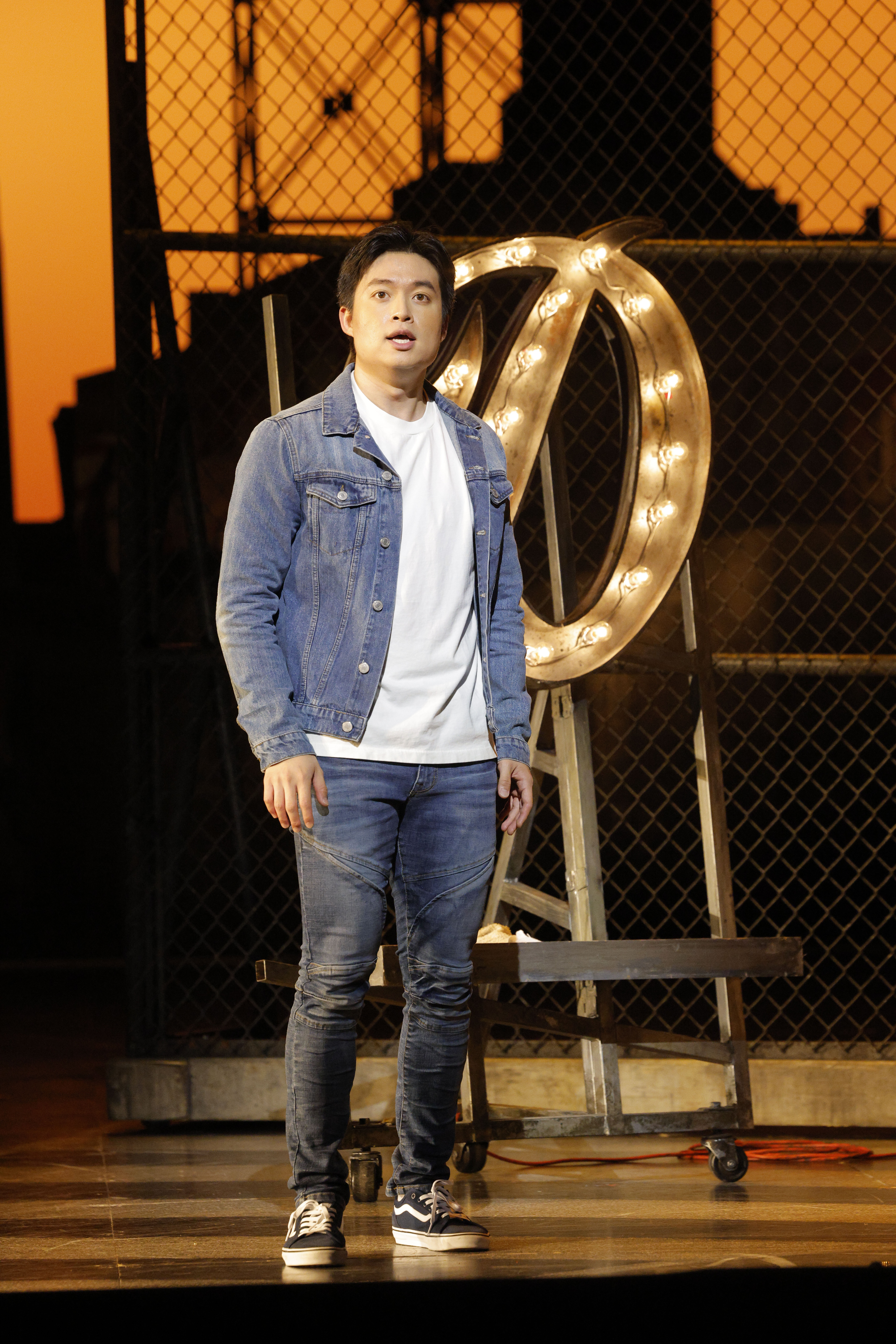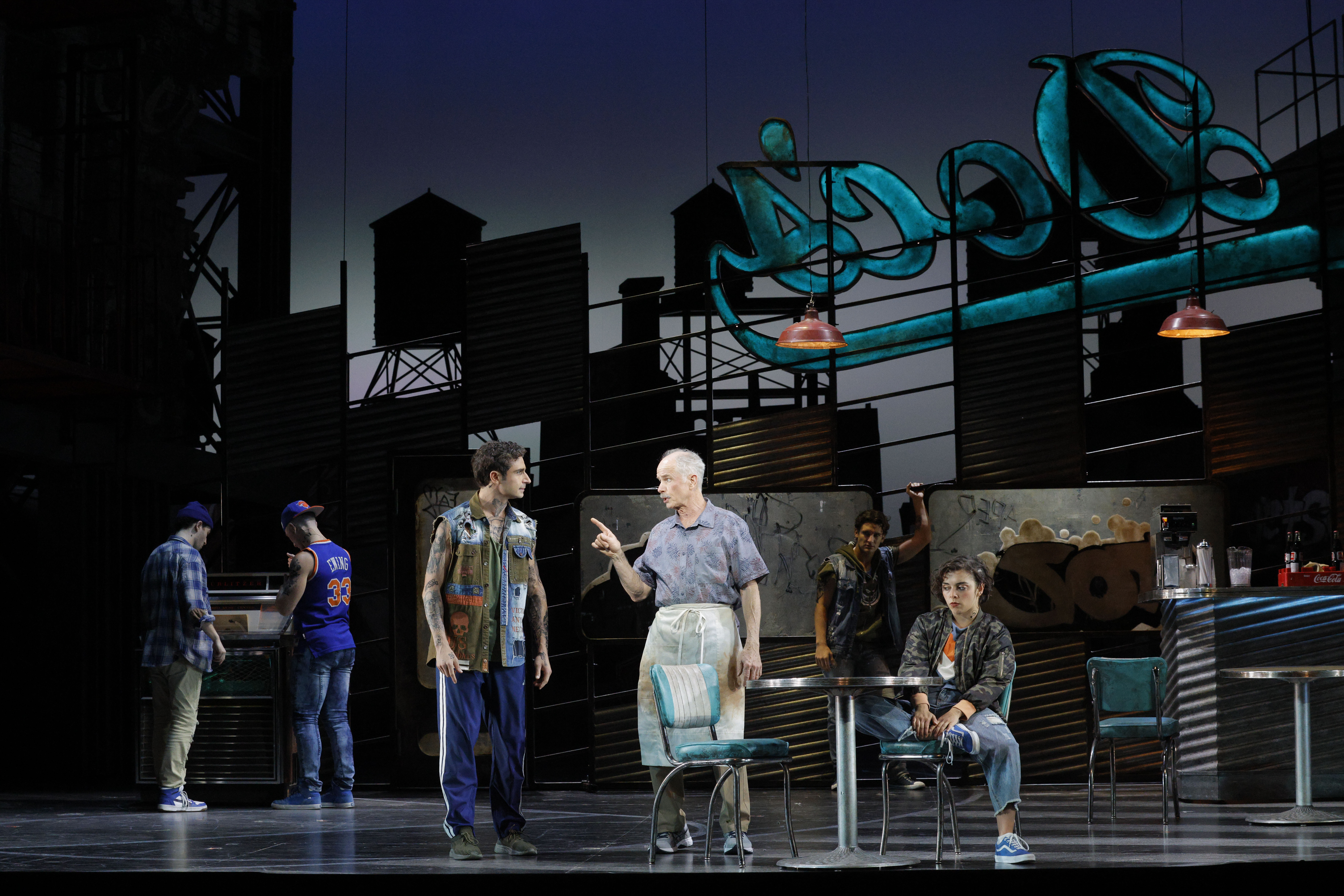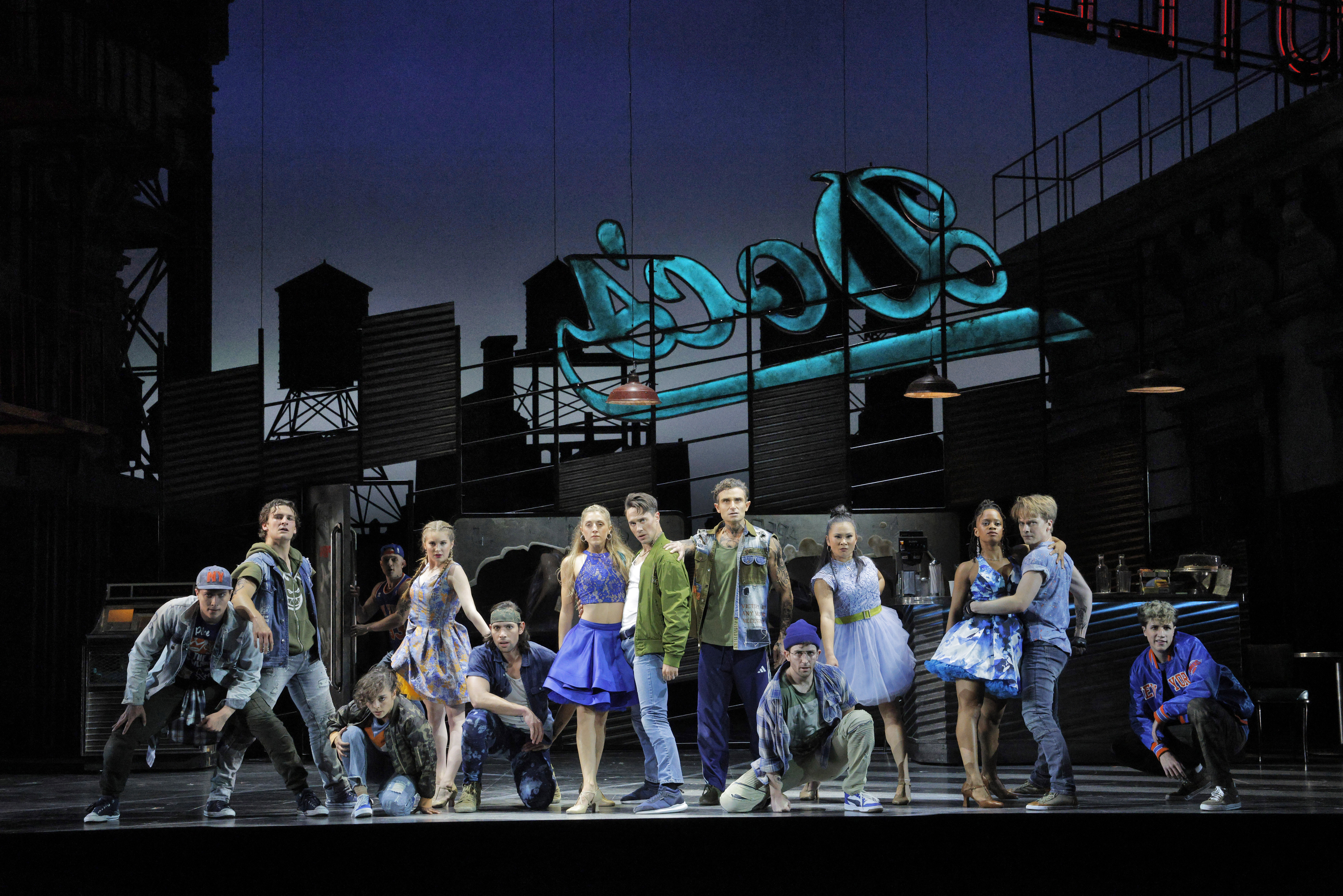 At center (in green), P. Tucker Worley as Riff in LA Opera's 2025 production of West Side Story. (Photo: Cory Weaver)