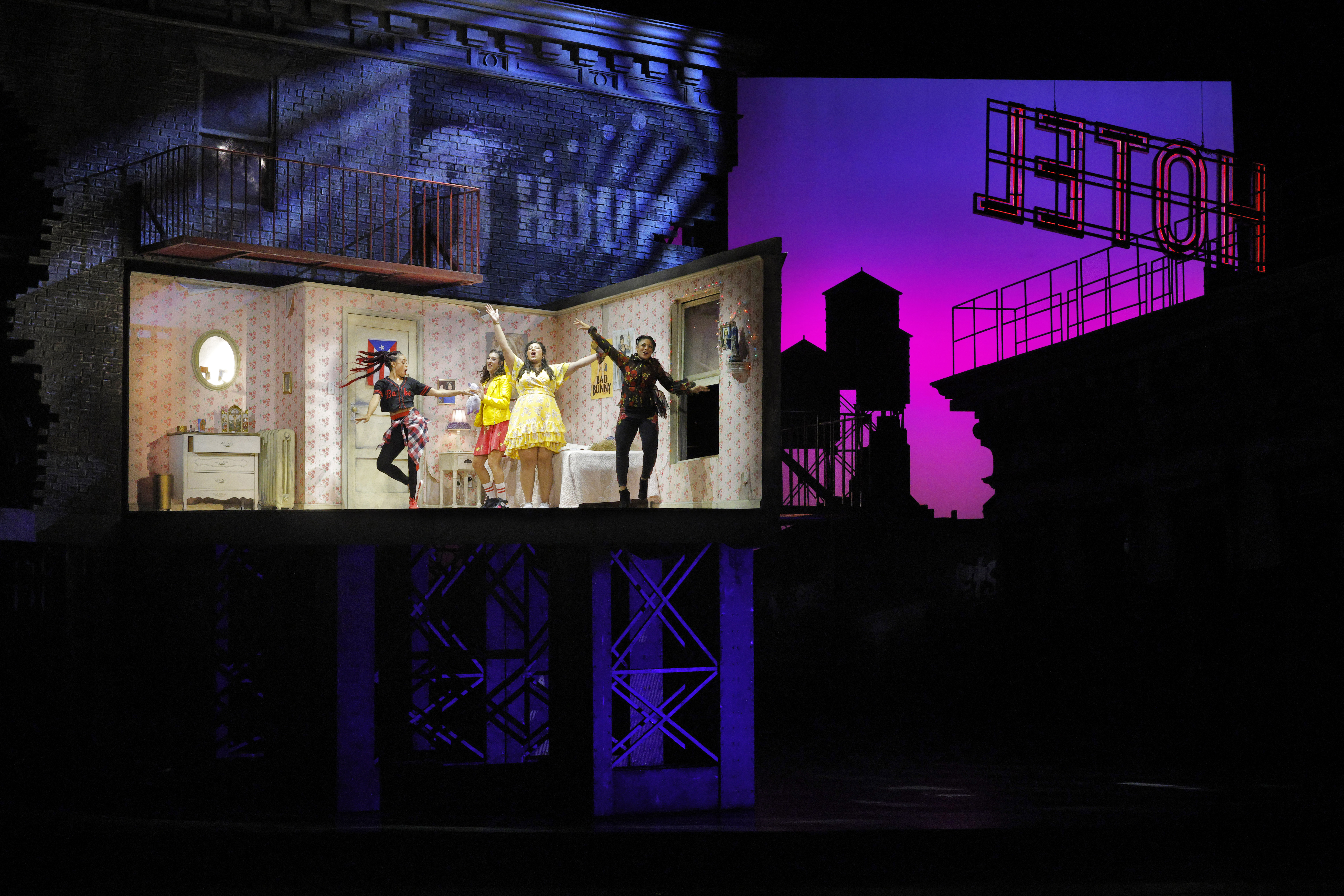Left to right, Julia Harnett as Consuelo, Rachel Josefina as Francisca, Gabriella Reyes as Maria and Daniella Castoria as Rosalia in LA Opera's 2025 production of West Side Story. (Photo: Cory Weaver)