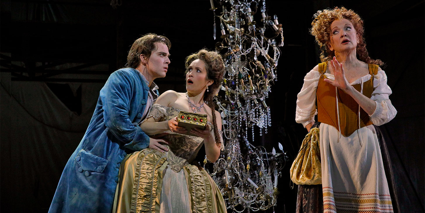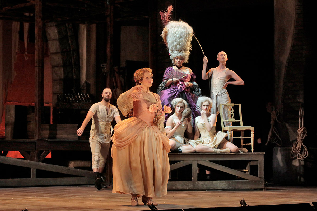 - Lavish costumes and rapidly-changing sets bursting with 18th-century Rococo style