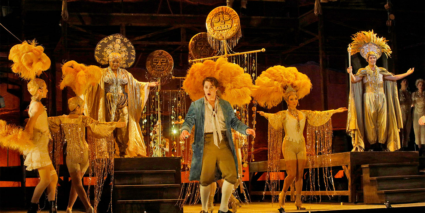 A scene from LA Opera's 2018 production of Candide. Shown: Jack Swanson as Candide. (Photo: Ken Howard)