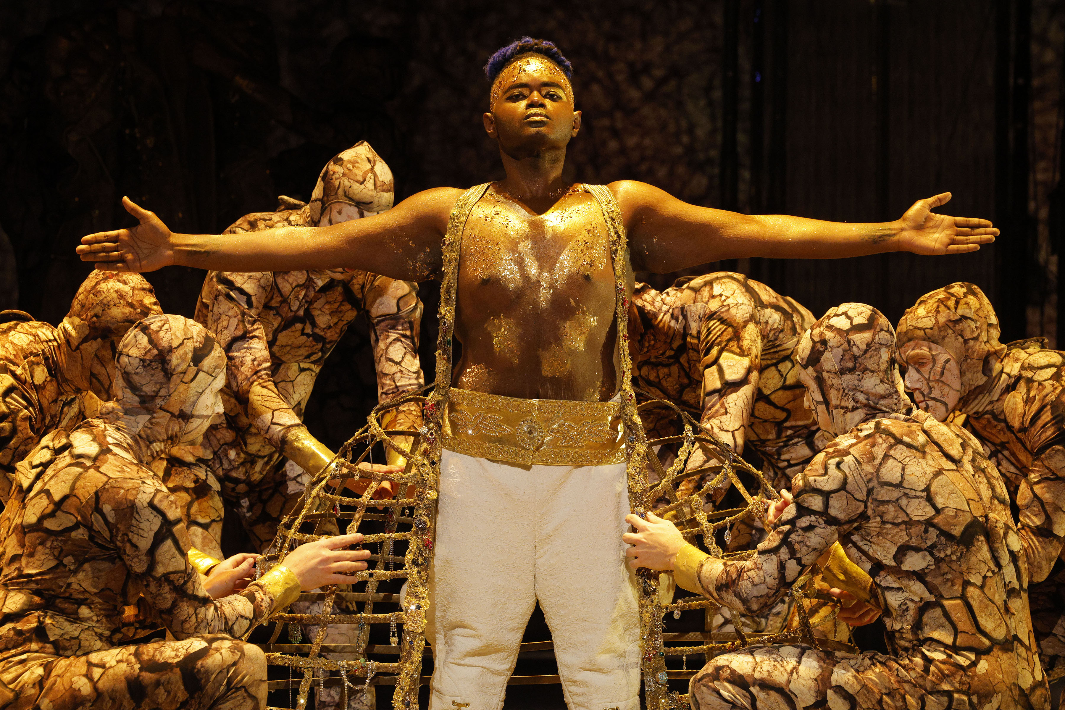 - Phelim McDermott’s spectacular production features stunning sets and costumes that feature animal heads, exotic plumes and intricate beadwork